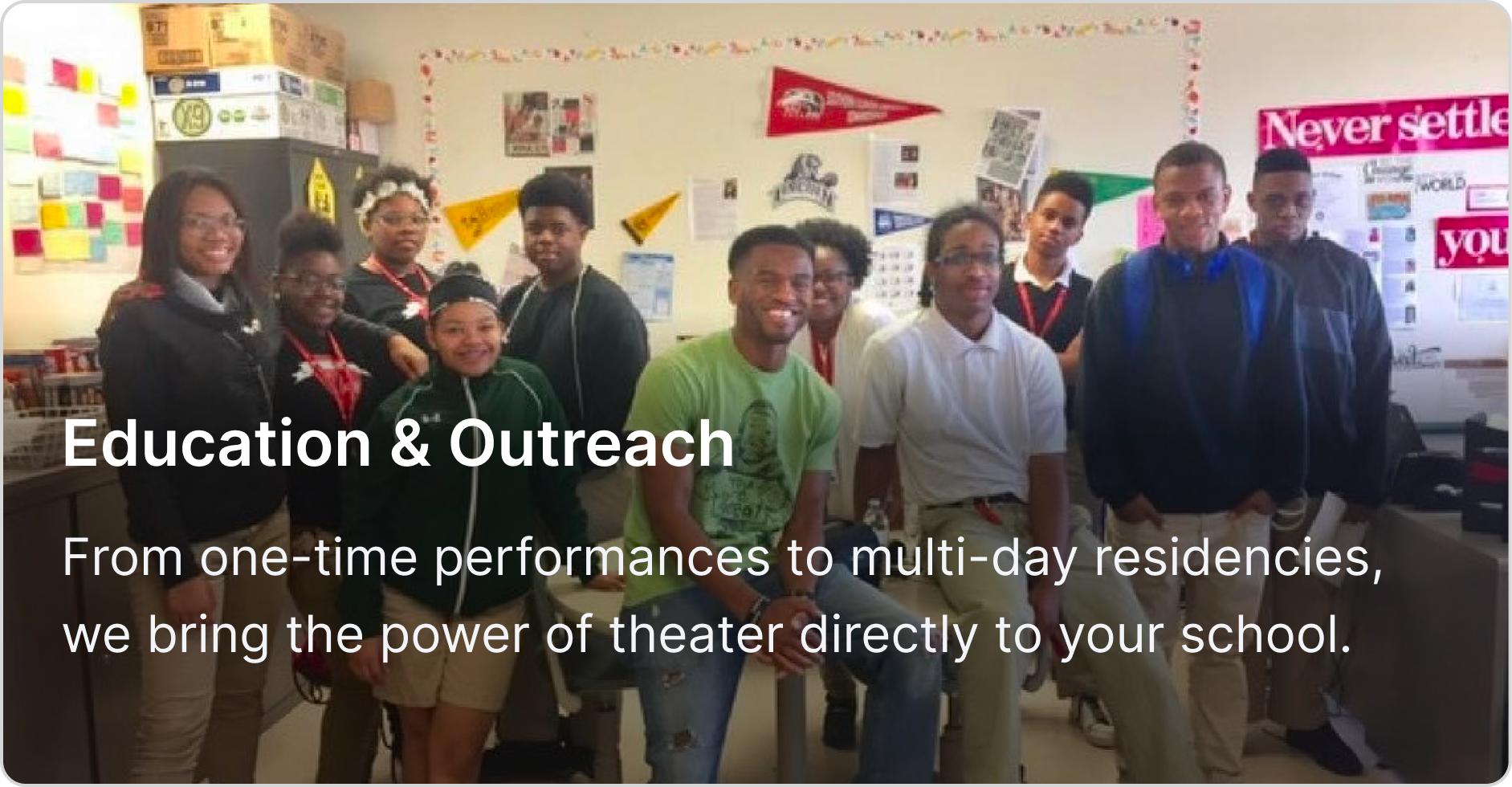We are dedicated to celebrating, educating, and empowering diverse audiences through the transformative power of African American theater. We create and tour innovative, curriculum-aligned productions that illuminate the richness of Black culture, history, and experiences.
